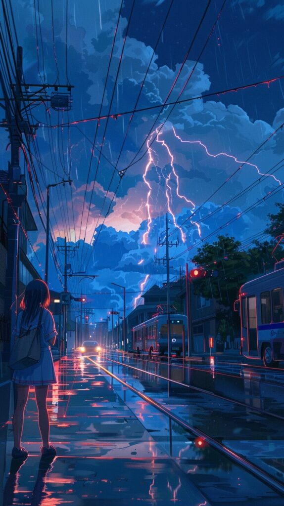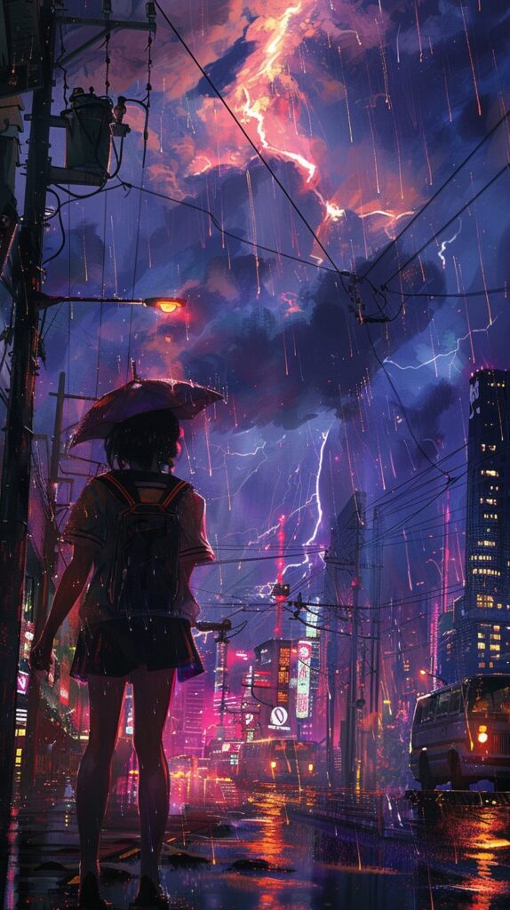 使用したプロンプトはこちら▼ <prompt> multiple big lightning strike on the city sky, in the style of electric color, 8k resolution, accurate and detailed, flickr, associated press photo, Women, sailor uniform, waiting for the bus, losing points at dusk, horizontal perspective, listening to music, full body in the painting, decisive moment, --ar 9:16