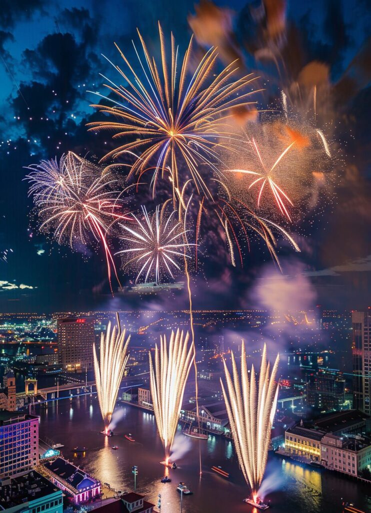 使用したプロンプトはこちら▼ <prompt> At night, the vast sky is filled with dazzling and colorful huge fireworks, professional cleaning window services in Sugar Land --ar 81:112 --style raw