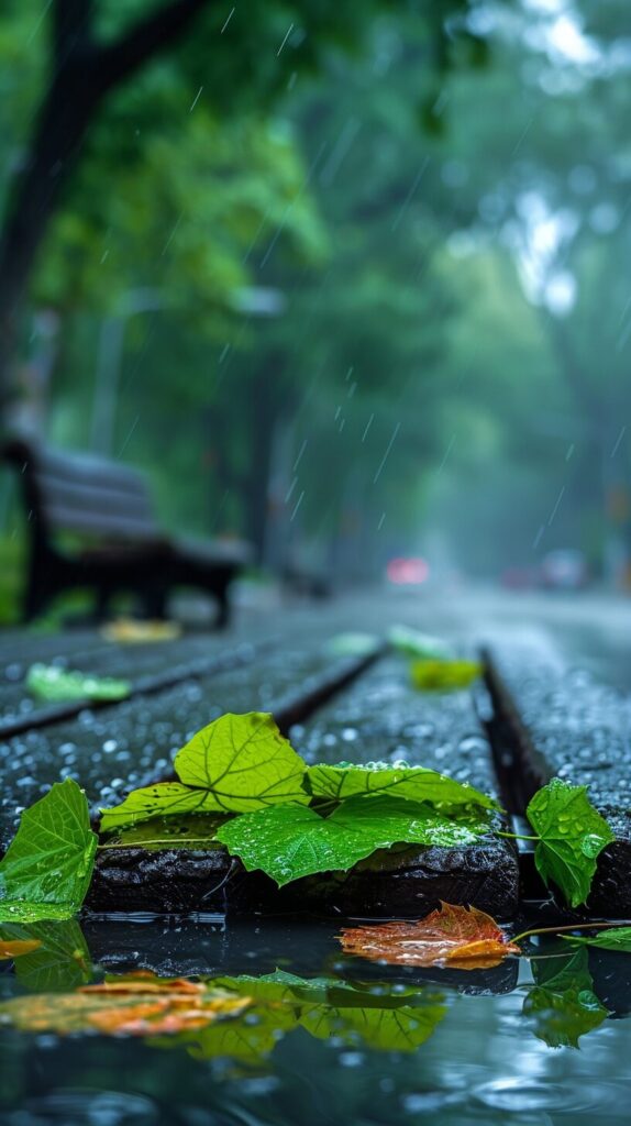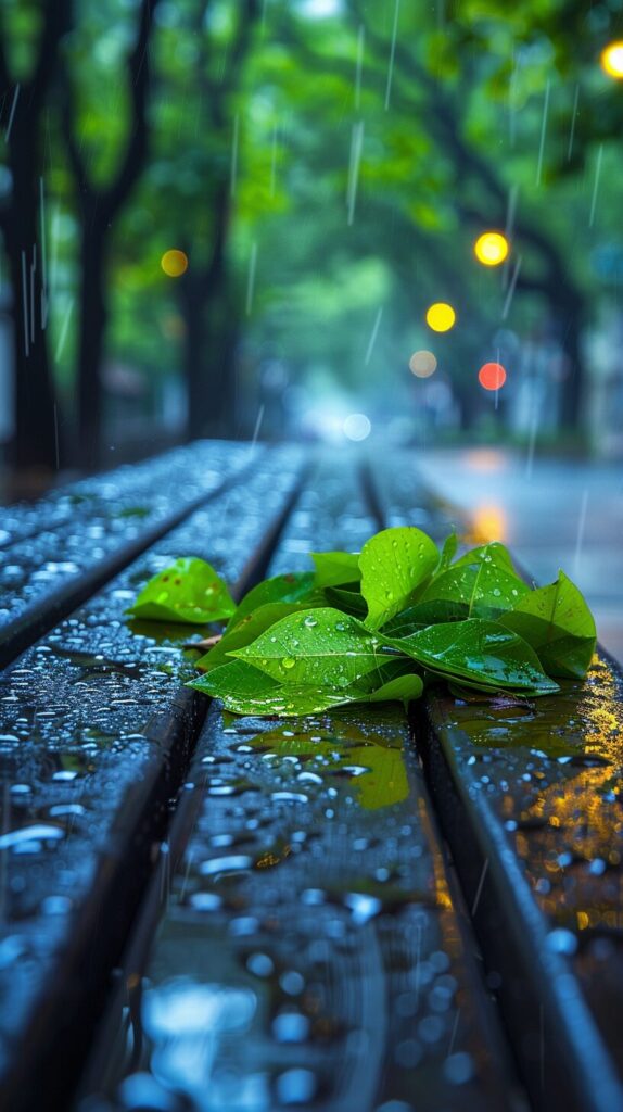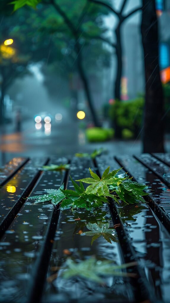 使用したプロンプトはこちら▼ <prompt> Subject description: The poster displays a serene scene in the drizzle in a corner of the city, with several fresh green leaves piled up on an empty bench, and a pool of water reflecting the color of the sky next to it. Raindrops gently drip from the leaves, creating a tranquility and freshness unique to the rainy season. Environmental scenario: The background is a typical urban street, including roadside trees in the rain, blurred building contours in the distance, and clean road surfaces after the rain. Rainwater brings a unique tranquility and cleanliness to this urban scene. Color scheme: Using soft colors, with a gray blue sky and tender green new leaves as the main color tones, reflecting the freshness and vitality of the rainy season. The reflection at the waterlogged area adds depth and richness to the color. Camera perspective: Using an angle close to the ground, focus on the benches and standing water, showcasing the beauty of the details of the city after rain, as well as the tranquil moments in spring rain. Layout and composition: Placing benches and new leaves in the foreground showcases the atmosphere of the rainy season through details, while the streets and trees in the background highlight the fresh changes brought by the rain to the city.16k --ar 9:16 --stylize 400 --iw 1.5