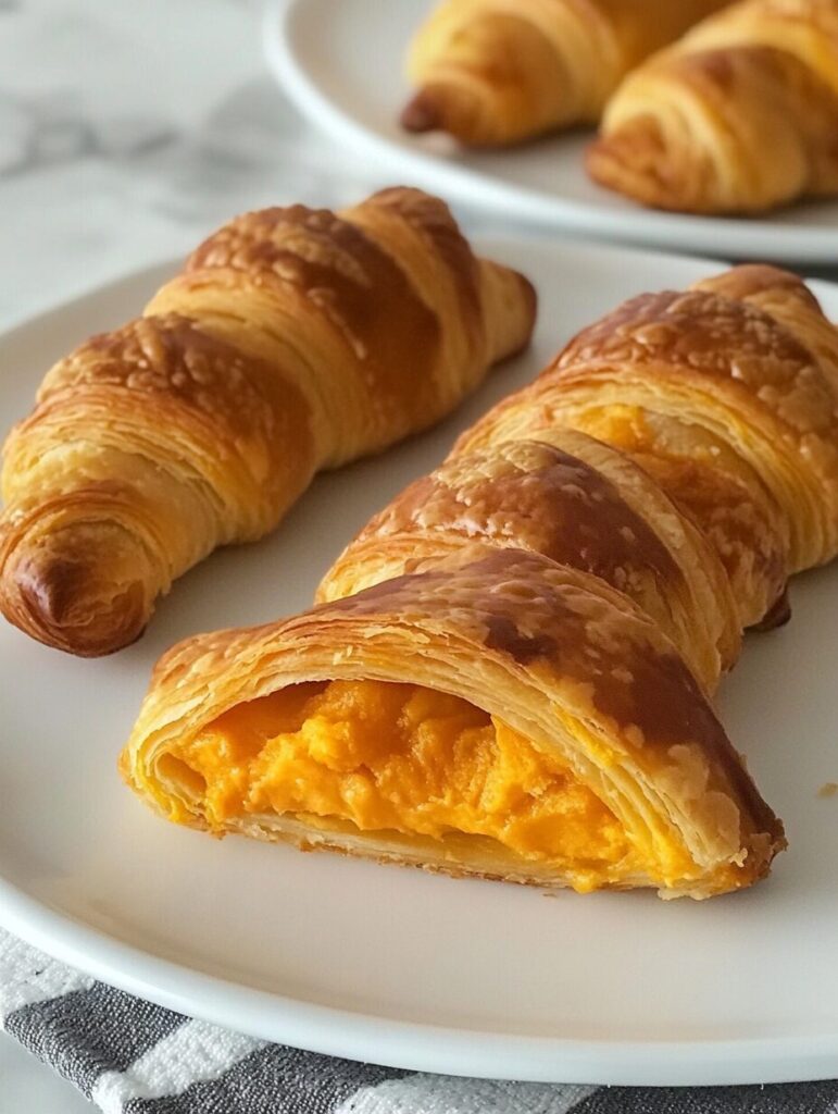 RECIPE NAME: Pumpkin Cream Cheese Croissants | food blogger photo from instagram, taken with an iPhone 15 Pro. | SHOT TYPE: wide angle, Sweet potato pastry --ar 3:4 --v 6.1