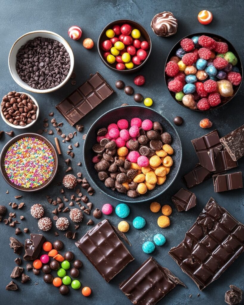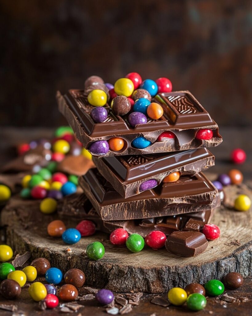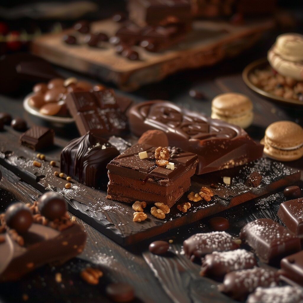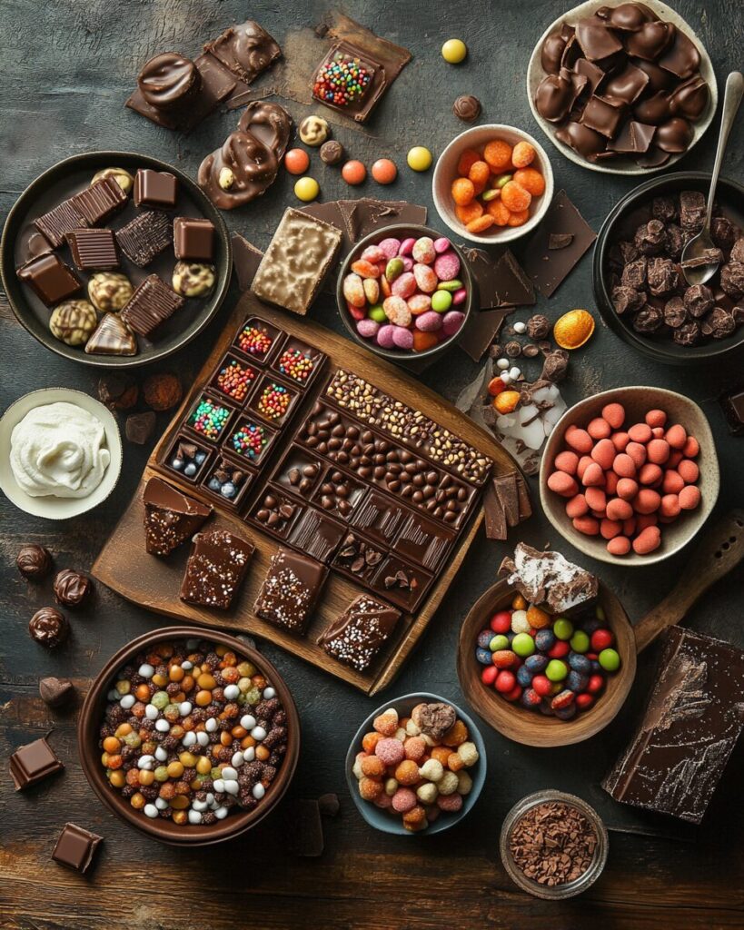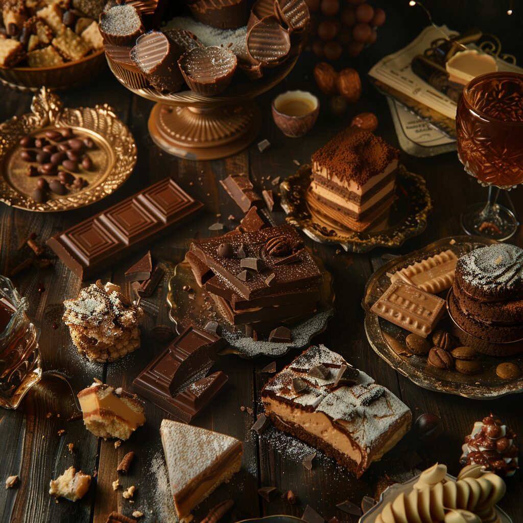 photoshoot of sweet foods like chocolate, candies, candy bars, etc --ar 4:5 --v 6.1