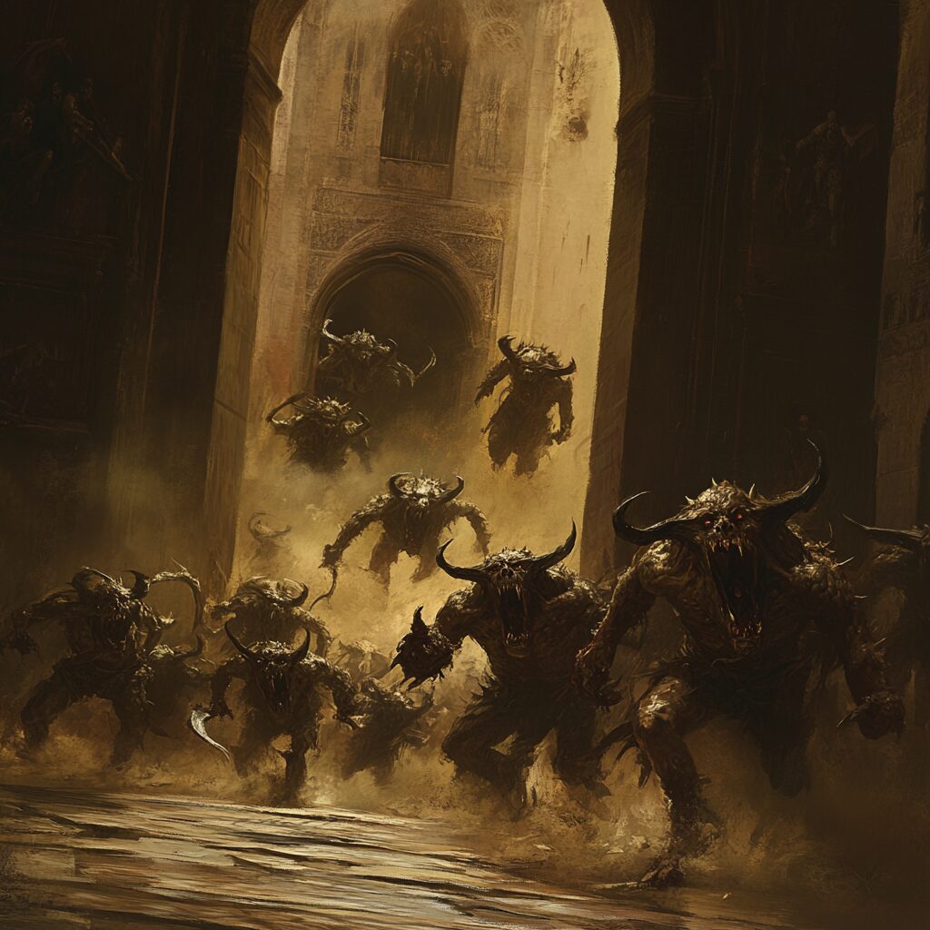 demon horde running from ringht side of picture towards the left side of picture --v 6.1