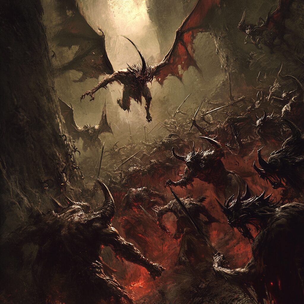 神話や宗教に登場する悪魔の名前は世界中の伝承に散見され、各文化や時代によって異なります。以下は、悪魔を描写するプロンプトに合わせて神話や宗教に関連する悪魔の名前を紹介します。