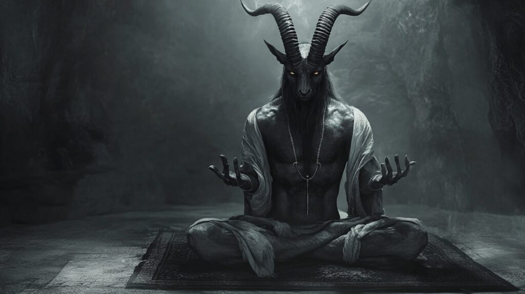 Islamic devils Djinn, lucifer goat humanoid --ar 16:9 --v 6.1