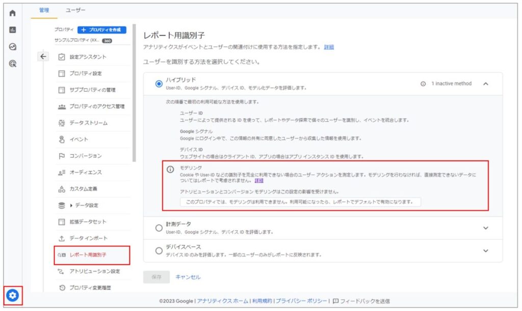 要件を満たせたら、管理画面のプロパティ列配下の「レポート識別子」で「ブレンディング」を選択すると、モデリングデータを確認することができます。 実際のレポートの見え方は後述します。